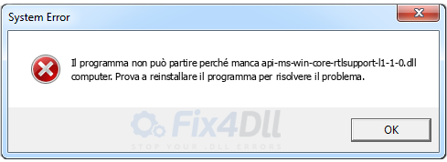 Una versione adatta di api-ms-win-core-rtlsupport-l1-1-0.dll trovata nel nostro database
