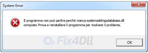 Puoi leggere maggiori informazioni su systemsettingsdatabase.dll on WikiDll.com